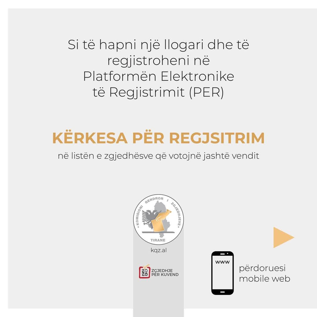 Qytetarët shqiptarë me banim jashte vendit, te cilet deshirojne te marrin pjese ne procesin e votimit ne zgjedhjet e pergjithshme te 11 majit 2025, mund të informohen mbi menyren e regjistrimit ne Platformën Elektronike të Regjistrimit (PER)!