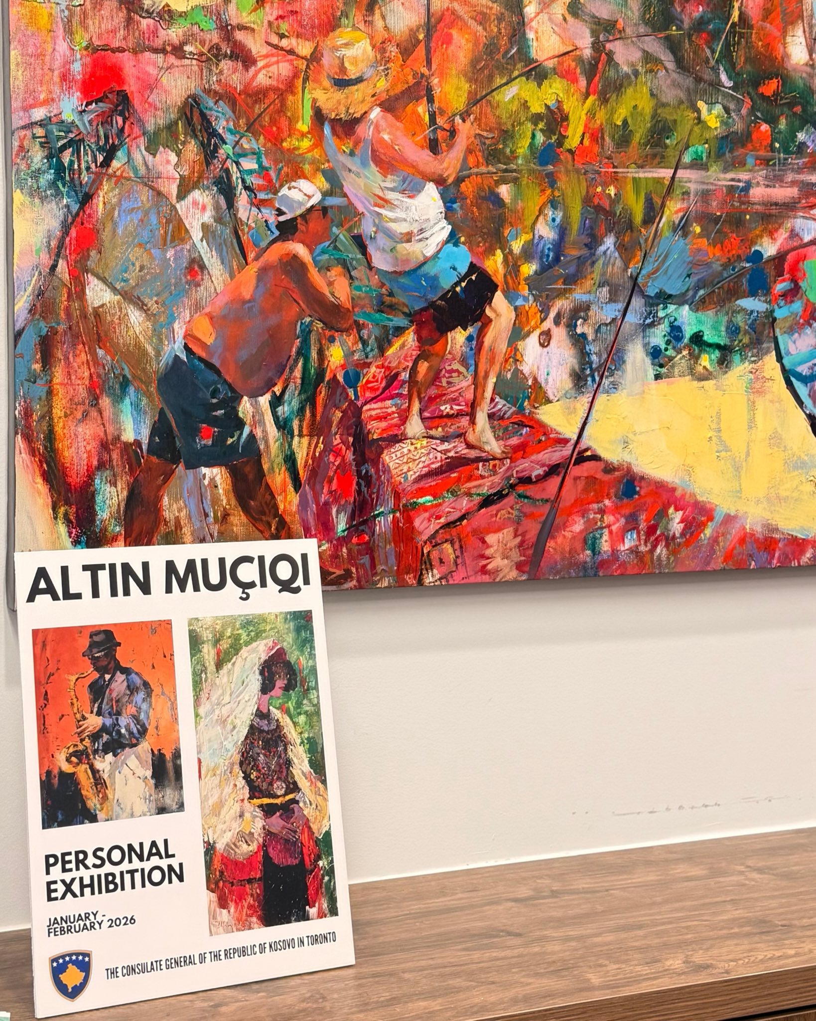 The event brought together art enthusiasts and members of the Albanian community to visit the solo exhibition of painter Altin Muciqi, where works created with a rich and vibrant color palette were presented, capturing the attention of the audience.