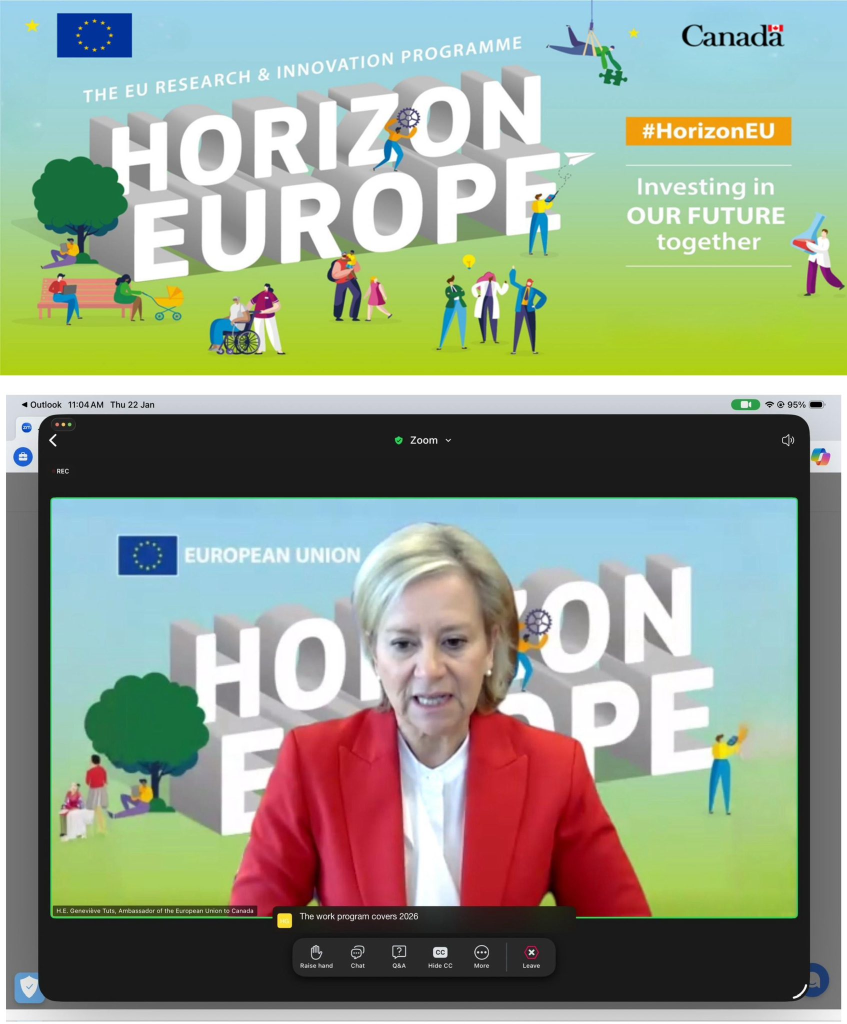 Ambassador Artemis Malo participated in the webinar “Upcoming Opportunities for Canadians under Horizon Europe”, during which the priorities of the Horizon Europe 2026–2027 program were presented.