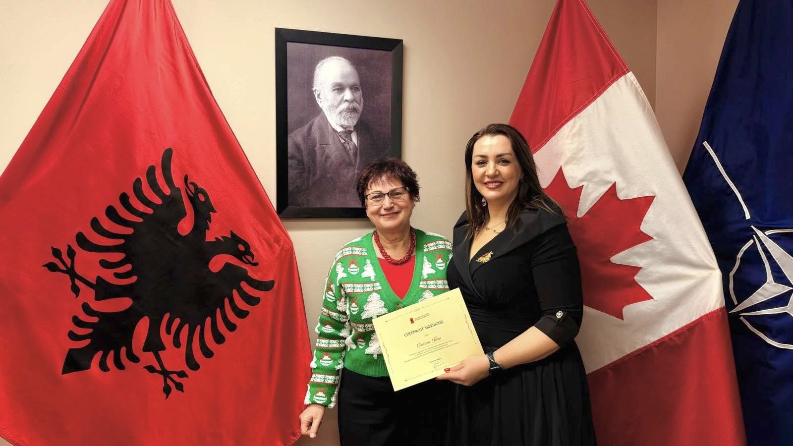 Në përfundim të këtij viti, Ambasada e Republikës së Shqipërisë në Kanada zgjodhi të shprehë mirënjohjen e saj ndaj disa prej bashkëpunëtorëve më të angazhuar nga komuniteti shqiptar në Kanada, të cilët kanë kontribuar në realizimin me sukses të aktiviteteve kulturore dhe kombëtare gjatë vitit 2025.