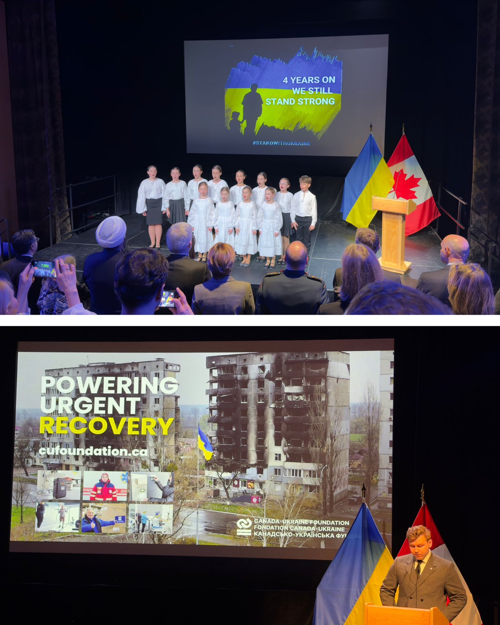 Programi përfshiu ekspozita mbi kontributet e disa prej organizatave kanadeze për Ukrainën, prezantime dhe fjalime përkujtimore, duke kulmuar me shfaqjen e dokumentarit “My Dear Théo”, një dëshmi e ndjerë dhe e fuqishme mbi përvojën njerëzore në kohë lufte.